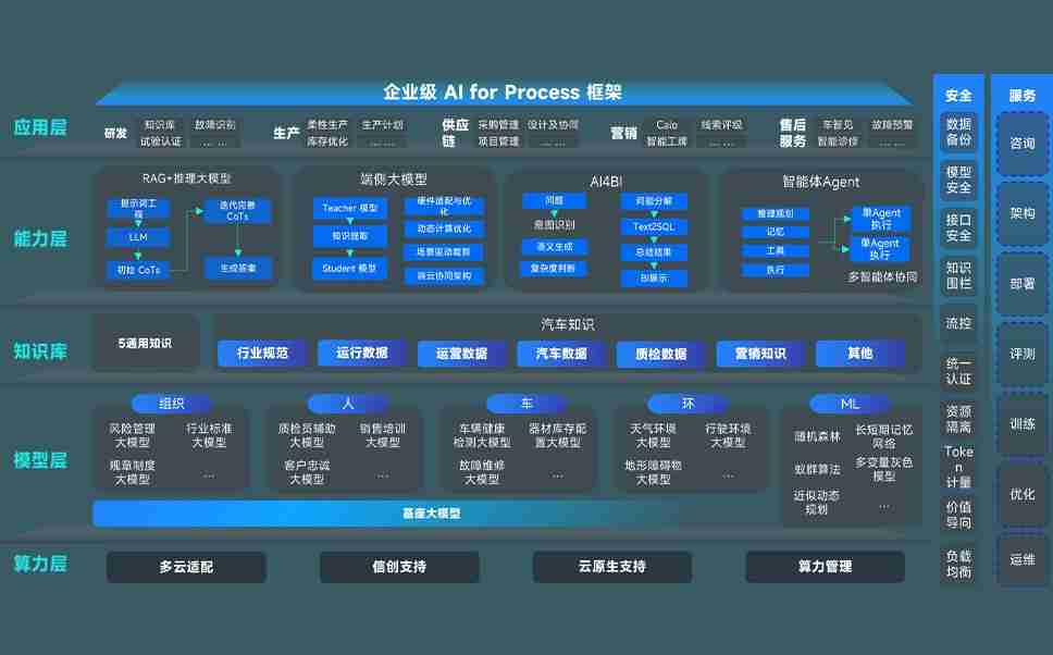 尊龙时凯问学智车解决方案是一套基于AI技术的汽车行业智能化系统,,覆盖从底层算力到顶层AI应用的全栈方案。。。。方案由算力层、、模型层和应用层组成:算力层,,方案支持多种一体机配置,,,具备云端灵活部署、、、多云适配以及动态优化计算资源的能力;模型层,,尊龙时凯问学平台版提供了企业级AI应用一站式构建与管理平台,,支持基于后训练强化技术的汽车企业专属模型的训练、、评测和运营;应用层,,,,尊龙时凯问学DeepSeek版提供包括超级员工、、、智能招采、、、、智能营销、、、、智能客服、、、AI for BI等一系列解决方案,,,,可助力汽车行业实现数字化转型,,,让管理更智能、、、响应更敏捷。。。